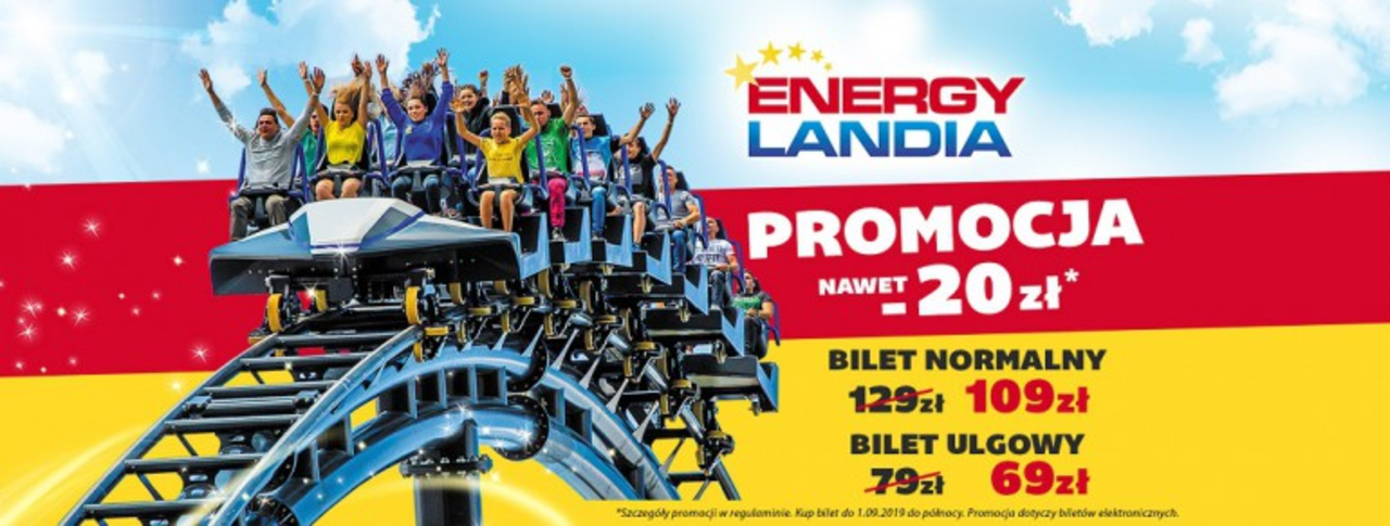 Przygotowana została promocyjna pula biletów na wrzesień i październik, których ceny rozpoczynają się już od 69 zł (za bilet ulgowy – jednodniowy)! W cenie 109 zł kupić można bilet normalny – jednodniowy lub bilet ulgowy na dwa dni zabawy w Energylandii. Zatem w naszych kieszeniach zostaje 10 lub 20 zł. Osoby, które chcą zaopatrzyć się w bilet normalny – dwudniowy zapłacą 189 zł zamiast 229 zł! W tym wypadku zaoszczędzimy aż 40 zł.