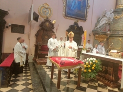 W Eucharystii wzięli udział przedstawiciele zgromadzenia z terenu całej diecezji, którzy tego dnia odbywali dziękczynną pielgrzymkę do wyjątkowej świątyni, w której znajduje się wierna kopia Grobu Chrystusa.