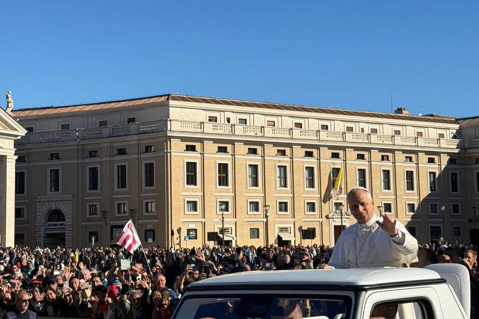 Dziś (5 listopada) uczestnicy pielgrzymki wzięli udział w audiencji generalnej na placu św. Piotra. W jej trakcie biskup Jan Piotrowski spotkał się z papieżem Leonem XIV.
