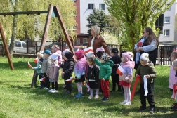 W przedszkolu został tez zorganizowany konkurs plastyczny „Z flagą w sercu”. Podczas uroczystości laureaci otrzymali nagrody i dyplomy.