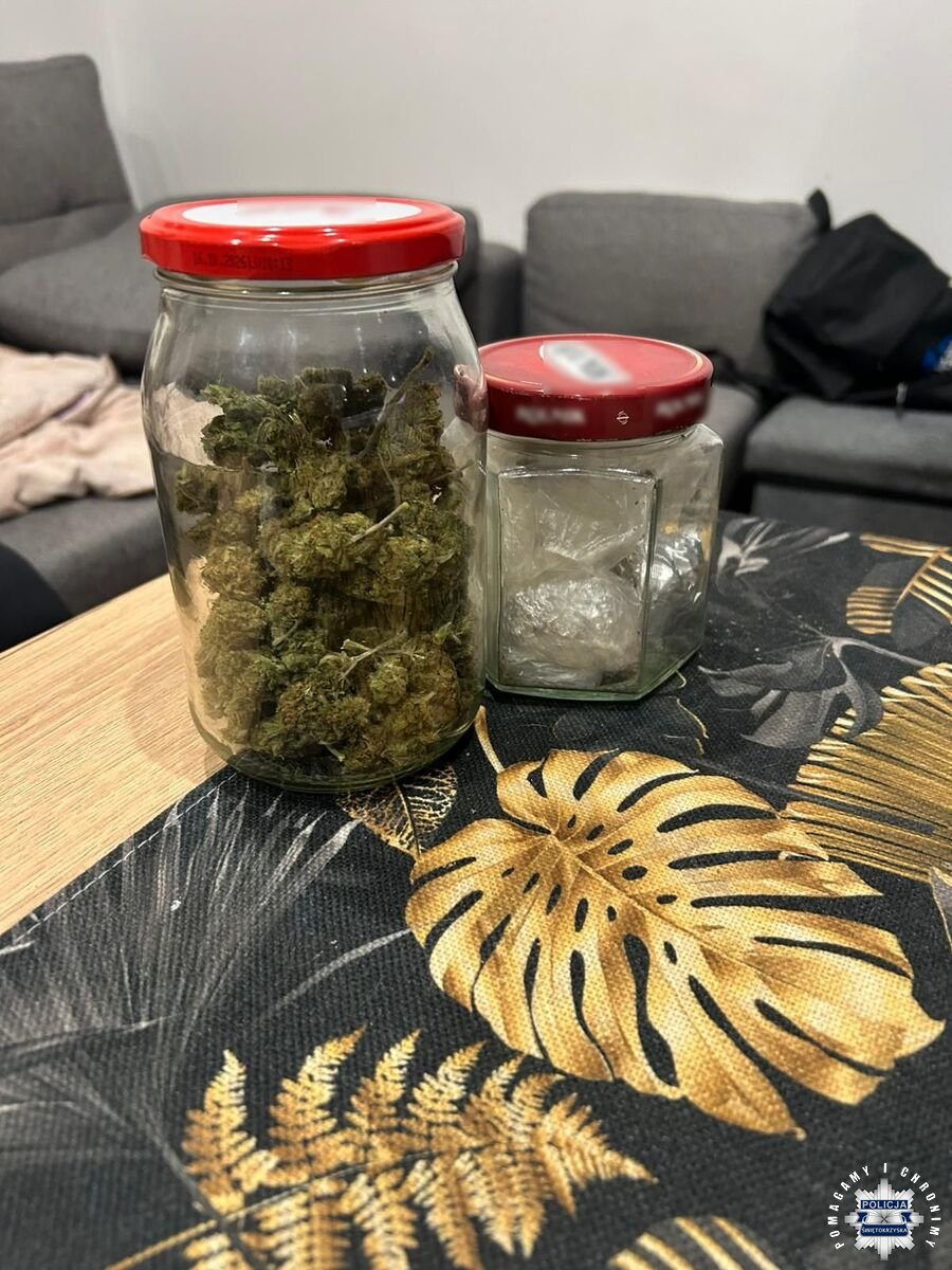 – Podczas ustalania okoliczności zdarzenia z kieszeni 40-latka wypadł szklany słoiczek. Jak się okazało, wewnątrz znajdował się zielony susz. W tej sytuacji charakter interwencji uległ zmianie. Policjanci zatrzymali mężczyznę i przeszukali zajmowane przez niego pomieszczenia – wyjaśnia nadkom. Anna Sławińska z KPP w Skarżysku-Kamiennej.