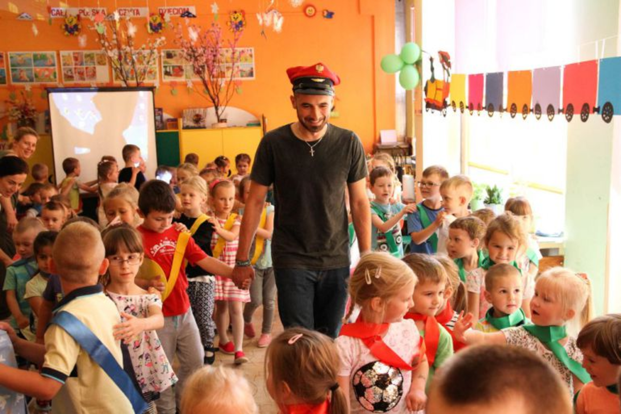 Oczywiście samo czytanie nie mogło zadowolić pełnych energii przedszkolaków, dlatego prezenter szybko został zaproszony do wspólnych zabaw, których motywem przewodnim były właśnie pociągi. Lokomotywa więc ruszyła, a Mateusz Żelazny dostał czapkę konduktora i poprowadził za sobą dzieci, które symbolizowały wagony. Sympatyczne spotkanie zakończyły humorystyczne rozmowy oraz wspólne zdjęcia.