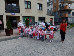 "Żyrafki starsze" - 3 latki z Niepublicznego Przedszkola Artystyczno-Językowego "Nasza Babcia" w Kielcach razem ze swoimi opiekunkami postanowiły kibicować i wspierać polską drużynę na Mistrzostwach Europy we Francji EURO 2016. Brawo!