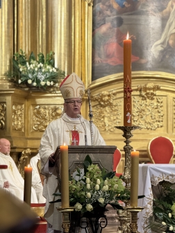 – Wiara w Jezusa Chrystusa jest zaproszeniem, aby człowiek, ubogacony darem odkupienia, nie zapominał o swojej godności dziecka Bożego i nie był jedynie obywatelem ziemi, ale kierował swoje życie i nadzieję ku wieczności. Drodzy bracia i siostry, po tych wszystkich pięknych przeżyciach Triduum Sacrum zauważamy, że człowiek naszych czasów tak wiele mówi o miłości i wolności, jednak często ogranicza je do doczesności, ziemskiego powodzenia, komfortu życia i miłości zmysłowej, obecnej w naszej ludzkiej naturze. Ona jednak zbyt często dominuje relacje międzyludzkie, bywa egoistyczna i nietrwała, a przez to wyrządza wiele krzywd. Miał rację, moi drodzy, zmarły w marcu tego roku pisarz Wiesław Myśliwski, który mówił: „Miłość to nie tylko chwile uniesienia, ale przede wszystkim codzienne wsparcie, trwanie przy drugiej osobie, nawet w cierpieniu i chorobie” – mówił.