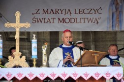 - Urok tego spotkania, to urok milionów serc, które biją na Ziemi Świętokrzyskiej, w naszej diecezji a także w całej Polsce. Pragnę podkreślić, że hasło tegorocznej pielgrzymki nie jest przypadkowe: „Z Maryją leczyć świat modlitwą”. Moi Drodzy! My nie mamy karabinów, nie mamy czołgów, nawet transparentów nie ma, ale mamy największą i najpiękniejszą broń: modlitwę. Pamiętajmy wszyscy, że tam, gdzie jest modlitwa, jest Bóg, a tam gdzie jest Bóg - jest miłość, która jest wierna, wytrwała, która kształtuje piękne ludzkie podstawy – powiedział biskup.