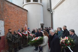Homilię, którą skierował do uczestników uroczystości, biskup pomocniczy naszej diecezji oparł na dzisiejszej Liturgii Słowa, mówiącej o przyjaźni, zdradzie i wierności. – Tego kogo się wyklina, jednocześnie wymazuje się z pamięci i wykreśla z historii. My tutaj zebrani przeczymy jednak takiej rzeczywistości. Nie tylko przywołujemy tych Wyklętych na pamięć, ale chcemy wstawiać się za nimi u Boga. Nasza obecność to nie jest jakaś poprawność polityczna, ale weryfikacja naszych myśli, serc i wrażliwości. Nosimy w sobie poczucie bólu jakiego doznali ci, którzy uchodzą za Wyklętych, a doznali tego bólu nie tylko przez katowanie, ale i przez zdradę – tłumaczył biskup Marian Florczyk. – Czy czujecie ten ból Żołnierzy Wyklętych zdradzanych przez przyjaciół? Doświadczyli oni zdrady od swoich. Oni nie umieli bacznie uważać na przyjaciół, a to dlatego, że sami byli wierni przyjaźni wobec rodaków, wobec braci i sióstr. A rodaków się nie zdradza. Wyklęci dochowali przysięgi – zauważył w swojej homilii główny celebrans. Nawiązał on także do czasów współczesnych. – Czy dziś coś się zmieniło na lepsze? Czy historia Wyklętych nas coś nauczyła? Powiem otwarcie: według mnie nie. Dlaczego i dziś uciekamy się do obcych? W szukaniu przyjaźni z obcymi kryje się zawsze pewna nieufność do swoich i zdrada – dodał.