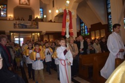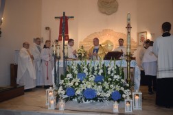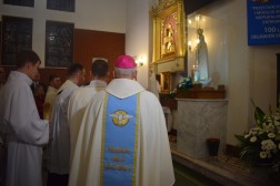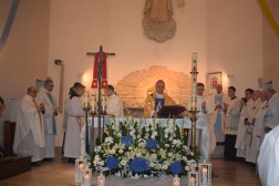 Punktem kulminacyjnym uroczystości była Msza św. pod przewodnictwem ks. biskupa Jana Piotrowskiego. Podczas homilii biskup mówił o znaczeniu objawień oraz o ich przesłaniu. - Fatima to portugalskie miasteczko, które jest oddalone od Kielc o 3238 kilometrów, ale jest nam bardzo bliskie z tej racji, że Maryja, Matka Jezusa jest matką całego Kościoła. Nasza wspólnota wiary uznaje i przypomina objawienia fatimskie jakie miały miejsce sto lat temu po to, abyśmy z Matką Najświętszą z pokorą umieli się pochylić nad Jezusem i darem Jego odkupieńczej miłości – powiedział biskup. Przypomniał jednocześnie, że z przesłania objawień fatimskich wypływa przede wszystkim prośba Maryi – nawracajcie się, czyńcie pokutę, odmawiajcie różaniec. - Jest to prośba o głębię życia duchowego, o medytację, o cześć dla Matki Jezusa oddawaną w pierwsze soboty miesiąca i powierzenie się Jej Niepokalanemu Sercu. Objawienia fatimskie nie nakładają żadnych ciężarów, ale aktualizują to, czego oczekuje od nas Pan Jezus: „po tym wszyscy poznają, żeście uczniami moimi, jeśli będziecie się wzajemnie miłowali” – podkreślał biskup. - Dzisiejszego świata nie psują maszyny i zdobycze techniki, ale zły człowiek, który jest siewcą intryg i zamętu (…) Czego nauczyła się Europa i Polacy po II Wojnie Światowej, po Ugandzie, Kambodży czy Syrii? Niewiele. To jest nauka dla każdego z nas, aby się przemienić i usłyszeć glos Maryi. Bracia i siostry! Należy pamiętać, że Fatima sama w sobie nie jest zbawieniem, a Jej orędzie nie zastępuje doskonałości objawienia, które Bóg nam ofiaruje w Chrystusie i które zostało przekazane przez proroków i apostołów. Należy jednak pamiętać, że znajomość objawień fatimskich jest ratunkiem, bowiem pozwala odnaleźć drogę, aby na nowo zbliżyć się do Boga, który jest Miłością i przyjąć ten zbawienny dar – dodał hierarcha.