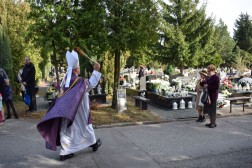 Mszę świętą na cmentarzu w Cedzynie poprzedziła procesja różańcowa alejami cmentarza.