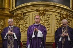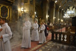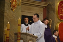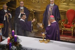 Eucharystii przewodniczył biskup Jan Piotrowski, biskup kielecki. W swojej homilii pasterz naszej diecezji nawiązał do okresu liturgicznego, który przeżywamy. – Adwent jaki przeżywamy zatrzymuje nas poniekąd na doczesności, albowiem oczekujemy Świąt Bożego Narodzenia. Czynimy różne przygotowania natury gospodarczej i domowej, ale tym samym oczekujemy przyjścia Jezusa Chrystusa, bowiem już z narodzinami otwiera się nowa perspektywa życia i niebywałych obietnic, które Bóg daje człowiekowi – mówił biskup kielecki. – Chrześcijanin jest człowiekiem nadziei, dlatego ufamy, modlimy się szczerze i polecamy duszę ŚP. Jerzego Rosińskiego Bożemu miłosierdziu. Adwent, który jest czasem oczekiwania Pan wspaniałomyślnie zamienia w czas nadziei. Doświadczenie zaś pokazuje nam, że życie spędzamy w ciągłym oczekiwaniu. Kiedy byliśmy dziećmi chcielibyśmy postępować jak dorośli. W młodości dążymy do wielkiej miłości, która nas wypełni. Kiedy jesteśmy dorośli pragniemy realizacji naszych planów i zamierzeń w sferze życia rodzinnego, małżeńskiego, zawodowego, czy społecznego. Kiedy przychodzi zaawansowany wiek dążymy do zasłużonego odpoczynku. Kiedy te nadzieje się spełnią, albo kiedy doznajemy porażki dostrzegamy, że w rzeczywistości to nie było najważniejsze. Potrzebujemy nadziei, która wyprowadzi nas poza obszar naszych marzeń i oczekiwań – dodał.