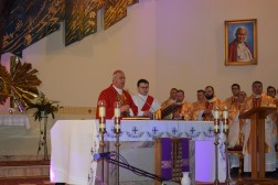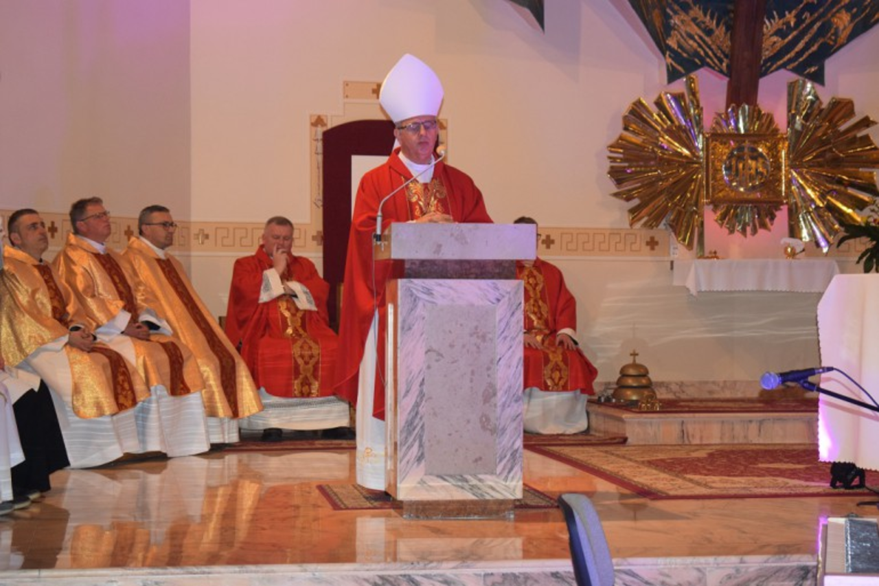 Biskup Jan Piotrowski podczas homilii odniósł się do rozmowy Pana Jezusa ze swoimi uczniami: "Znacie drogę, dokąd Ja idę. Odezwał się do Niego Tomasz: Panie, nie wiemy, dokąd idziesz. Jak więc możemy znać drogę? Odpowiedział mu Jezus: Ja jestem drogą i prawdą, i życiem. Nikt nie przychodzi do Ojca inaczej jak tylko przeze Mnie." – Kto wybiera Jezusa Chrystusa, ten nie skazuje się na drogę wyznaczoną jakimiś przypadkami prób i błędów, ale jest ona wyznaczona miłością Boga, który ponad wszystko ukochał człowieka w Jezusie Chrystusie swoim jedynym synu – mówił do młodych biskup Jan Piotrowski.