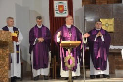 - Bracia i Siostry! Zacni Pielgrzymi na Święty Krzyż! Mury tej gościnnej dąbrowskiej świątyni, której patronuje Najświętsza Maria Panna Matka Kościoła otwarły szeroko swoje podwoje, aby po raz czwarty przyjąć uczestników Nocnej Drogi Krzyżowej z Kielc na Święty Krzyż - mówił podczas homilii ks. biskup Jan Piotrowski. - Tym razem zarząd Katolickiego Stowarzyszenia Młodzieży Diecezji Kieleckiej zaprasza na pasyjny, wielkopostny szlak, aby go przeżyć pod hasłem słów zaczerpniętych z pieśni "Krzyżu Święty nade wszystko" - kontynuował hierarcha.