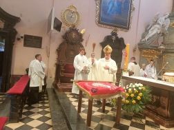 Rycerze Kolumba świętują 20. rocznicę obecności w Polsce. Z tej okazji w sobotę, 18 kwietnia, biskup kielecki Jan Piotrowski odprawił Mszę Świętą w Bazylika Grobu Bożego w Miechowie.