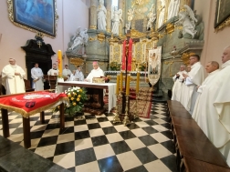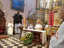 W Eucharystii wzięli udział przedstawiciele zgromadzenia z terenu całej diecezji, którzy tego dnia odbywali dziękczynną pielgrzymkę do wyjątkowej świątyni, w której znajduje się wierna kopia Grobu Chrystusa.