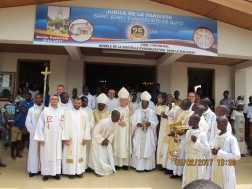 - Jednym z nich były obchody 25-lecia parafii pod wezwaniem św. Jana Ewangelisty w Buyo, założonej przez misjonarzy i uposażonej przez księży diecezji kieleckiej – ks. Antoniego Sokołowskiego i ks. Andrzeja Zawadzkiego. W tej parafii ks. Antoni, podczas pierwszego pobytu w Afryce, wybudował bardzo starannie kościół wraz z całym zapleczem. Pracę tę kontynuuje ks. Andrzej. Tam w pierwszą niedzielę lutego odbyły się uroczystości z udziałem biskupa diecezji Jean Jacquesa i biskupa Aleksego, przewodniczącego Konferencji Episkopatu Wybrzeża Kości Słoniowej. Miałem okazję przewodniczyć tej Eucharystii i na jej zakończenie skierować słowo do wiernych.