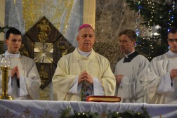 Najświętszej Ofierze w tej wspólnocie parafialnej przewodniczył kielecki biskup diecezjalny, a koncelebrowali ją licznie przybyli księża. W kościele zgromadzili się parafianie oraz rodziny i znajomi ośmiu wdów, które postanowiły wybrać drogę życia konsekrowanego. Homilię wygłosił biskup Jan Piotrowski, który przypomniał zebranym na uroczystości jaka jest istota świętości. – Drogą do świadectwa wiary jest świętość, a ona jak pisał w adhortacji „Cieszcie się i radujcie” Ojciec Święty Franciszek, jest najpiękniejszą twarzą Kościoła. Świętość – moja, twoja, wasza, każdego z nas. Nie ma innego Kościoła. Nie ma Kościoła biskupa Piotrowskiego, nie ma Kościoła dziekana Czarnoty. Nie, mój Kościół i on jest taki jaki ja jestem w moim życiu, w całości mojego życia. Świętość nie jest jakimś ekskluzywny towarem i przywilejem, ale jest drogą każdego chrześcijanina. Świętość nie jest romantyczną ekstazą. Musi wyrastać z miłości oszlifowanej regularną modlitwą, postem, pokutą i łaską sakramentów świętych. Nie lęka się też ofiary i cierpienia. Jest wyzwaniem dla wszystkich ochrzczonych – tłumaczył biskup kielecki. – Dziś jesteśmy świadkami tego, że nasze drogie panie, wdowy naszej diecezji, kiedyś żony, ale nadal matki i babcie, szukają dobrowolnie drogi świętości. Przez konsekrację i całkowite wolne poświęcenie się Chrystusowi pragną żyć dla Niego we wspólnocie Kościoła w codzienności swojego życia. Konsekracja jest aktem żyjącego Kościoła w mocy Ducha Świętego – zauważył biskup Jan Piotrowski.
