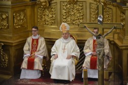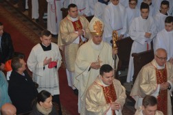 O zadaniach jakie spoczywają na lektorach mówił także ks. biskup Jan Piotrowski w swojej homilii. –Pan Jezus nie jest Pasterzem jednego sezonu. On jest zawsze, a Jego odkupieńcza miłość ogarnia wszystkich: jest niezmienna i bezinteresowna. (…). Drodzy Bracia i Siostry, a szczególnie Wy – Drodzy kandydaci do liturgicznej posługi lektora ! Wasza odpowiedź dana Jezusowi we wspólnocie Kościoła nabiera rangi świadectwa wiary i ofiary. Dajecie Panu Bogu swój czas i zdolności, aby służyć innym. Jakość tej posługi będzie ewangelicznie piękna i owocna, jeśli sami pozwolicie, aby Bóg kształtował Wasze Seca dłutem Bożej Łaski i użyźniał je pięknymi owocami dobrych uczynków – mówił biskup. - Może w oczach niektórych, nawet bliskich Wam osób nie znajdziecie uznania, ale posiądziecie skarb, którego złodziej Wam nie ukradnie, ogień nie strawi a robak nie zniszczy. Służcie Waszym parafiom, nawet jeśli to wymaga trudu i dyscypliny, ofiarowania czasu a nawet rezygnacji z bycia w tym czasie gdzie indziej. Pamiętajcie, że radosnego dawcę Bóg miłuje. To będzie Wasz kapitał na dalsze życie a może nawet i droga do wyboru powołania, według Waszego rozsądnego rozeznania. Powołania do założenia rodziny, czy bycia kapłanem diecezjalnym lub zakonnym. Miejcie pewność, że Pan Bóg da wam czytelny znak. Kochajcie liturgię, zwłaszcza Eucharystię, bowiem ona jest sercem naszego chrześcijańskiego życia. Proszę Was, abyście swoją codzienną modlitwę czynili oddechem duszy. Tylko tak nie zabraknie Wam sił na pielgrzymich życiowych drogach - zapewniał ordynariusz diecezji kieleckiej.