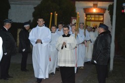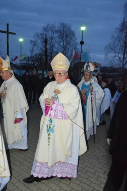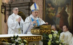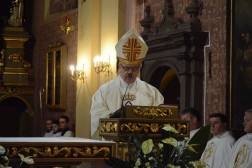 W czasie Mszy św. prymas poświęcił "szatę dla Maryi" będącą wotum wdzięczności parafian, pielgrzymów i mieszkańców dekanatu piekoszowskiego za Złoty Jubileusz Koronacji obrazu Matki Bożej Miłosierdzia. W słowach homilii arcybiskup Wojciech Polak zwracał szczególną uwagę na to, czego uczy nas postawa całkowitego oddania się Bożemu miłosierdziu pokazywana nam przez Maryję. – Kobieta, w której życiu wszystko zostało ukształtowane i przeniknięte obecnością miłosierdzia, które stało się ciałem nie przestaje nam powtarzać: Chodźcie, zbliżcie się z ufnością. Przyjdźcie, a otrzymacie dar miłosierdzia. Nie bójcie się, nie lękajcie, nie wstydźcie się. Ojciec czeka na was z otwartymi ramionami, aby wam przebaczyć, aby przyjąć do swego domu, aby okazać nam swoje miłosierdzie – mówił w homilii.