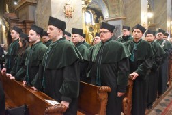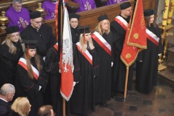 – Modlimy się o spokój duszy profesora Jacka Semaniaka, aby Bóg, który jest odwieczną miłością, przyjął tego serdecznie dobrego człowieka do swojej chwały, tam w domu Ojca, gdzie jest mieszkań wiele(…). Stanowimy – nie tylko akademicki – senat wdzięczności i długu miłości dla zmarłego To miejsce zawdzięcza mu faksymile Antyfonarza Kolegiaty Kieleckiej z 1372 roku, gdzie zawarty jest ten przepiękny hymn śpiewany na rozpoczęcie każdego roku akademickiego „Gaude Mater Polonia”. Osobiście jestem dłużnikiem pana profesora za jego serdeczność, życzliwość, którą poznałem od pierwszych dni mojej pasterskiej posługi w Kielcach – mówił Biskup Kielecki Jan Piotrowski.