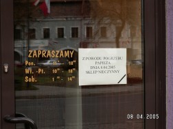 - Pomyślałem, że to są chwile, które trzeba uwiecznić. Postanowiłem zrobić cykl zdjęć pokazujących jak kielczanie żegnali papieża Polaka. Chodziłem więc i fotografowałem Kielce – powiedział Matuszak. - Może te zdjęcia nie są idealne, może ich jakość pozostawia wiele do życzenia. Ale myślę, że to nie o to chodzi.. Dla mnie to są wspomnienia i cenna pamiątka. Te fotografie udowadniają, że Jan Paweł II był dla kielczan bardzo ważny. Ja mam szczególny sentyment do zdjęcia przedstawiającego szybę sklepu na której przyklejono kartkę: „Sklep nieczynny z powodu pogrzebu”. To pokazuje, że ludzie rezygnowali w tym dniu z pracy, by oddać hołd Ojcu Świętemu. Chciałbym, żeby to była też lekcja dla następnych pokoleń, żeby ktoś, kto kiedyś będzie je oglądał, wiedział, że Jan Paweł II był bardzo ważny dla naszego miasta – podsumował.