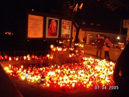 Dwanaście lat temu, 2 kwietnia o godzinie 21.37 zmarł Ojciec Święty Jan Paweł II, a nasze serca pogrążyły się w wielkim smutku. Przez kilka dni we wszystkich kościołach modliły się tłumy wiernych. Przed pomnikiem papieża Polaka na Placu Jana Pawła II oraz w wielu innych miejscach w Kielcach zapłonęło tysiące zniczy. Chwile te uwiecznił na fotografiach Tadeusz Józef Matuszak, były wykładowca Uniwersytetu Jana Kochanowskiego w Kielcach. Poniżej prezentujemy zdjęcia z tamtych dni.