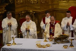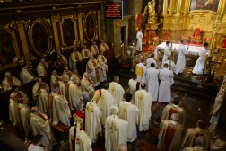 - Drodzy Bracia i Siostry! Gromadzimy się dziś w imię Jezusa Chrystusa, by sprawować Najświętszą Eucharystię w trzecią rocznicę ingresu do Katedry kieleckiej pasterza kościoła kieleckiego - biskupa Jana. Z rozmodlonym sercem przy naszym pasterzu, wraz z biskupem Marianem stoją: kapłani, osoby konsekrowane, diakoni i alumni naszego Seminarium Duchownego, siostry i bracia świeccy. Stajemy więc ożywieni duchem wiary i zjednoczeni ze swoim pasterzem słyszymy wezwanie: "Bądź wierny aż do śmierci, a dam Ci wieniec życia" - powiedział biskup nominat. Ks. dr Andrzej Kaleta wiele mówił o tym, jak bardzo potrzebna w dzisiejszych czasach jest wiara i prawdziwi świadkowie Chrystusa.