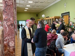 – To spotkanie ma podwójny wymiar – jest potrzebne i bardzo odczuwalne jako wsparcie materialne w postaci obfitego posiłku, który tutaj otrzymują wszyscy zgromadzeni przy wspólnym stole. Dodatkowo na odchodne otrzymują paczki do domu. Ten wymiar materialny ma na pewno duże znaczenie, ale jestem wewnętrznie przekonany, że nie mniejsze, a może i większe znaczenie dla tych ludzi ma poczucie wspólnoty. Jeżeli bardzo często czują się wyizolowani, na marginesie życia, że nikt o nich nie myśli i że w życiu układa im się najgorzej, to w tym momencie doświadczają czegoś ważnego. Po pierwsze, nie są sami – ludzi w podobnej sytuacji bywa więcej. Po drugie, przynajmniej od czasu do czasu, na miarę możliwości, staramy się ich zgromadzić, zaopiekować, dać to, co niezbędne, aby okres świąt mogli przeżywać w radości, w takiej społecznej, braterskiej atmosferze – mówi ksiądz Stanisław Słowik, dyrektor Caritas Diecezji Kieleckiej.