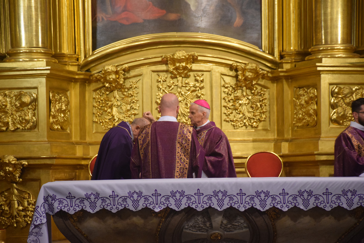 W nabożeństwie w kieleckiej katedrze wzięło udział wielu wiernych, którzy na znak pokuty posypali głowy popiołem.