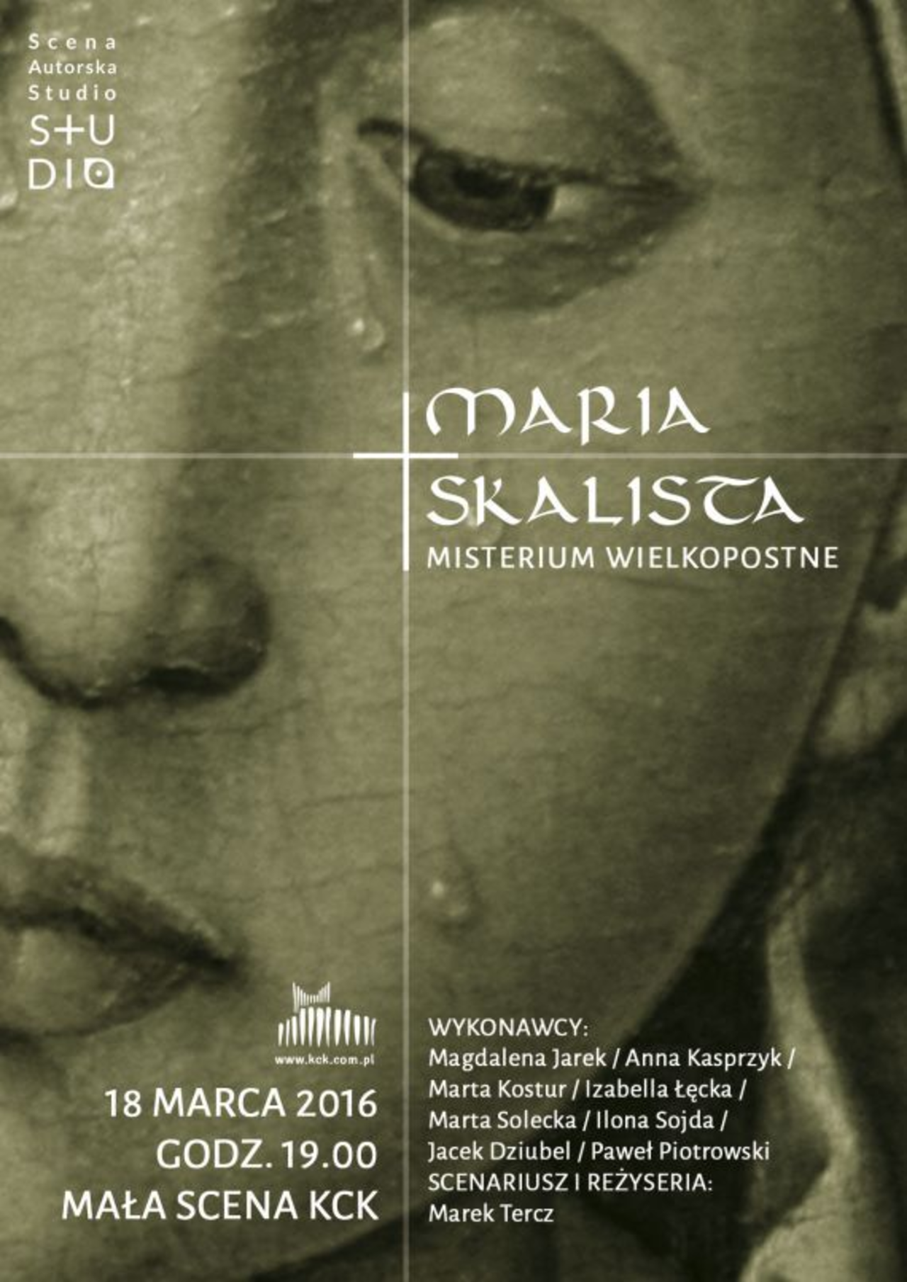 W piątek 18 marca na Małej Scenie KCK zobaczymy i usłyszymy m.in.: Magdalenę Jarek w roli Marii Skalistej; Martę Kostur, Izabellę Łęcką oraz Ilonę Sojdę i Martę Solecką w roli śpiewających narratorek, zaś Annę Kasprzyk i Jacka Dziubla w roli psalmistów. Solistom towarzyszą muzycy: Krzysztof Korban i Paweł Piotrowski. Całość przygotował i wyreżyserował Marek Tercz. Bilety w cenie 10 zł.