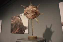 – Jest wykonana z kamienia pochodzącego z kamieniołomu Zygmuntówka. Ubrałem to w takie kolce, które okalają kamień. Forma tej rzeźby nie jest zbyt duża. Widzimy tutaj różnego rodzaju kalcyty, które się świecą. Monstrancja nawiązywała do słońca i dlatego widzę pewną korespondencję do niej w mojej pracy. Z kolei „Oś świata” nawiązuje do naszej puszczy jodłowej i jest wykonana z drewna jodłowego – dodaje artysta.