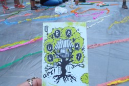 Latający dywan powstał na bazie sporej płachty folii. Została ona przyozdobiona różnymi elementami. - To kompletny misz-masz estetyczny. Uczestnicy zabawy mieli całkowitą wolność w zdobieniu dywanu. Używali bibuły oraz naklejek – mówi Przemysław Żmiejko. To był drugi happening organizowany przez artystów z ulicy Dużej. Tydzień wcześniej przygotowany został symboliczny domek na drzewie, który nadal można oglądać przy Placu Artystów.