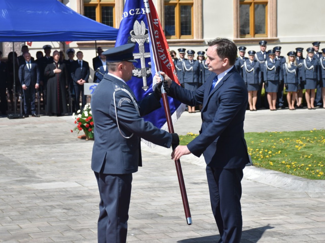 – Przyjazd tutaj był dla mnie oczywisty. Sztandar dla Aresztu Śledczego w Kielcach jest wyrazem mojego szacunku dla pracy funkcjonariuszy. Często jest ona niedoceniana, a bez niej nie byłoby bezpieczeństwa. Gwarantują oni realizację finału związanego z dochodzeniem sprawiedliwości. Służba z osadzonymi bywa bardzo trudno, a czasami niebezpieczna. Ta uroczystość nawiązuje do tradycji II Rzeczypospolitej – mówił minister Zbigniew Ziobro.