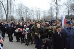 Uczestnicy uroczyści złożyli kwiaty pod pomnikiem upamiętniającym Żołnierzy Wyklętych. Wśród oddających hołd bohaterom podziemia niepodległościowego byli m.in. Mirosław Gębski, starosta kielecki, Mariusz Gosek, członek Zarządu Województwa Świętokrzyskiego, czy pułkownik Paweł Chabielski, komendant Centrum Przygotowań do Misji Zagranicznych, ale również parlamentarzyści Prawa i Sprawiedliwości: senator Krzysztof Słoń i posłanka Maria Zuba. – Ten dzień ma przede wszystkim służyć temu, żeby przywrócić imiona naszym bezimiennym bohaterom i godnie ich pochować. Jest to miejsce i czas, aby upominać się o Polaków, którzy poświęcili życie dla ojczyzny – tłumaczył senator Słoń. – Wyklęci i ich nazwiska miały być wymazane z naszej pamięci. Czas pokazał jednak, że komunistom się to nie udało – dodała posłanka Zuba.