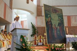 Biskup Kazimierz Ryczan podczas uroczystej mszy świętej w Sanktuarium Józefa Opiekuna Rodziny w Kielcach ukoronował wizerunek Najświętszej Rodziny z Nazaretu.