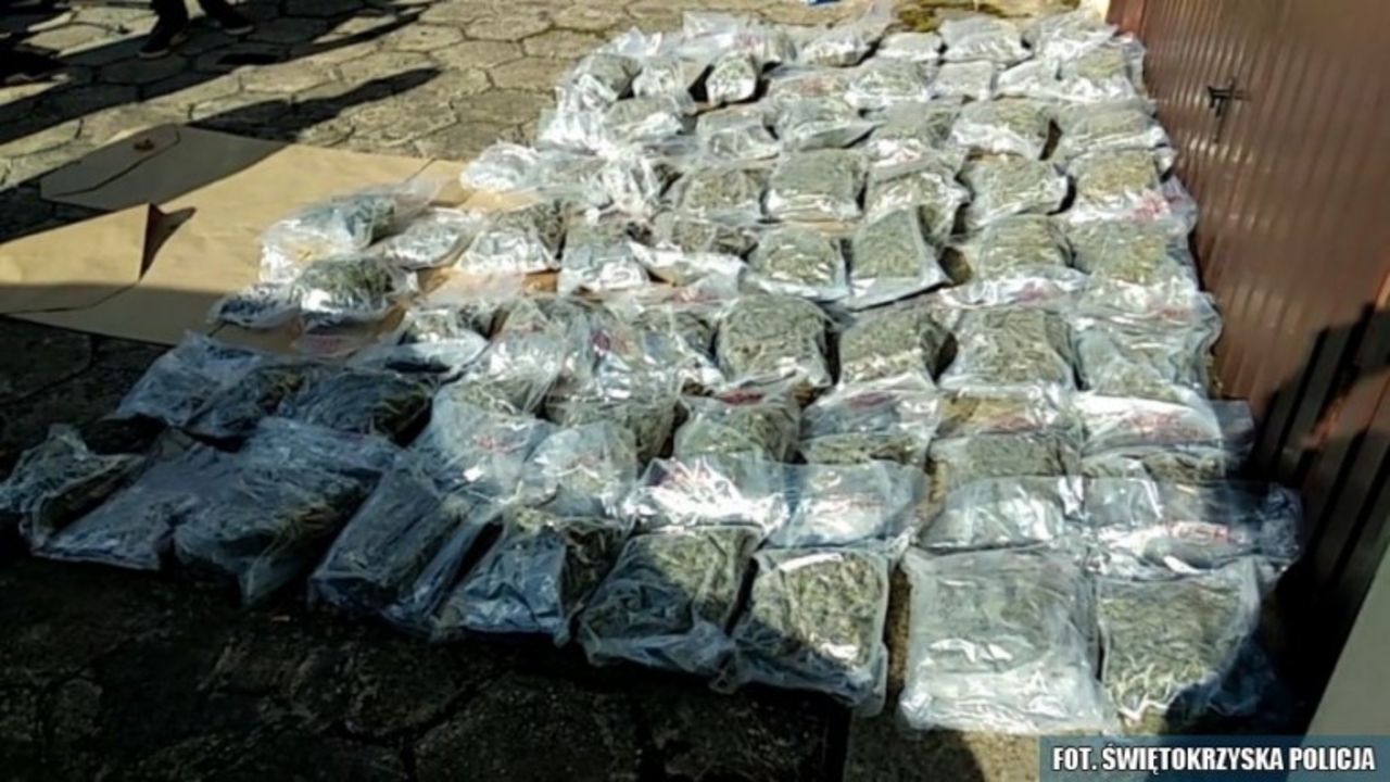 Policjanci z Wydziału do walki z Przestępczością Narkotykową zatrzymali małżeństwo z Kielc, które podejrzane jest o przemyt 30 kg marihuany z Hiszpanii. Łączna wartość przejętych narkotyków to ponad 1,5 miliona złotych.