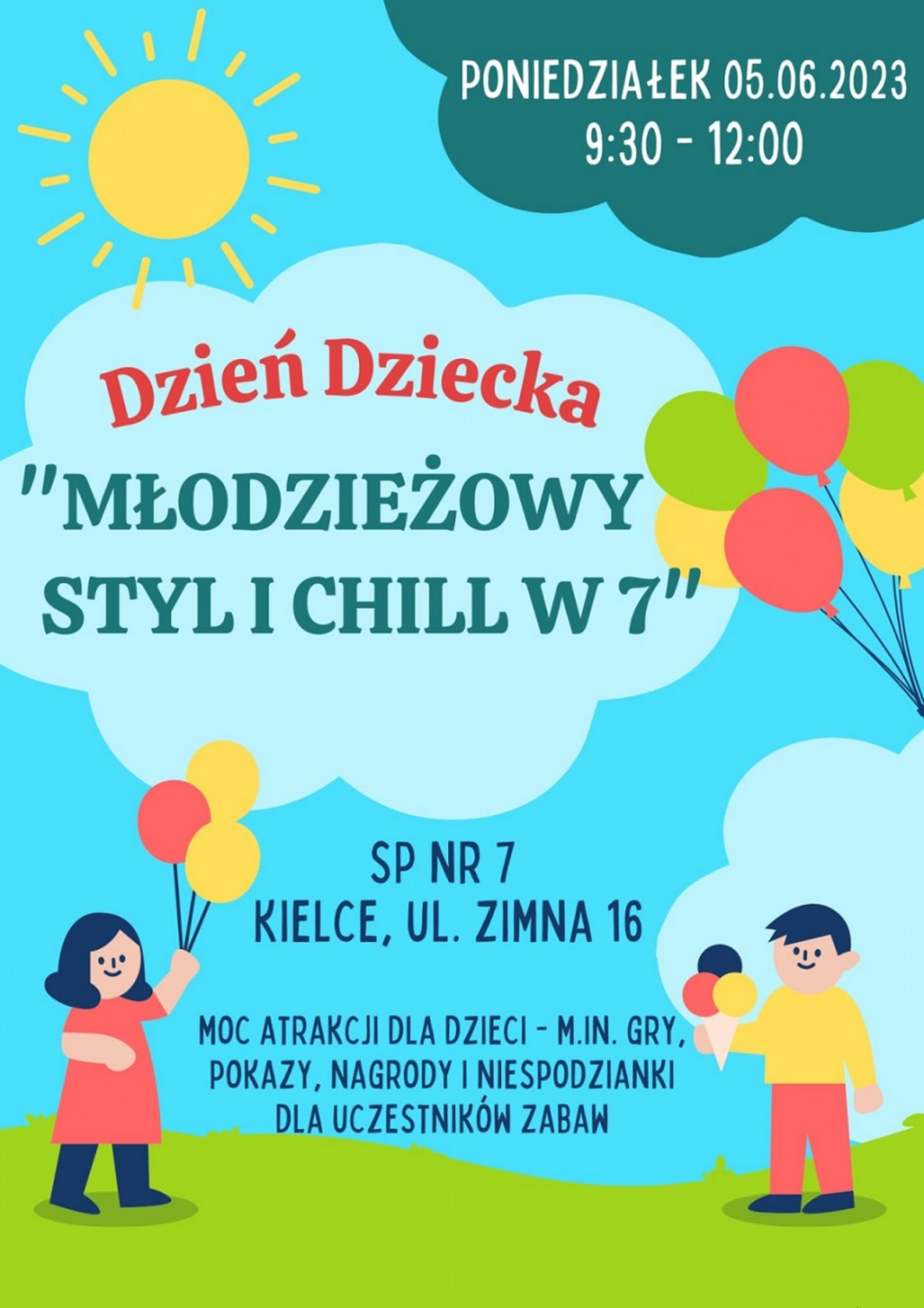 Kto powiedział, że Dzień Dziecka należy świętować tylko 1 czerwca? Nikt! Dlatego koleją dawkę atrakcji dla dzieci i młodzieży zaplanowano także na poniedziałek, 5 czerwca. Przy Szkole Podstawowej nr 7 w Kielcach odbędzie się festyn pod nazwą „Młodzieżowy styl i chill w 7". Organizatorzy zapraszają wszystkich chętnych. Jak zapewniają, będzie co robić.