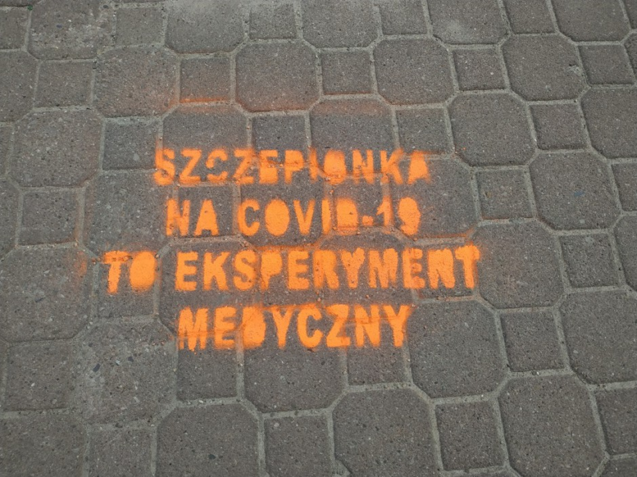 Na chodnikach w centrum miasta pojawiły się hasła z treściami zniechęcającymi do szczepień.