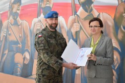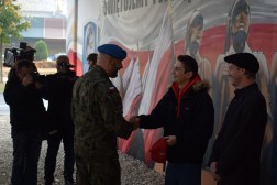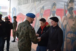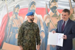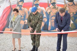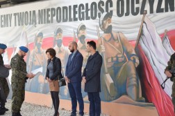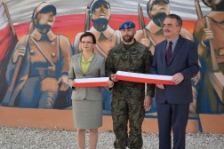 Na uroczystości obecny był pułkownik Paweł Chabielski, komendant jednostki na kieleckiej Bukówce. – Udało nam się stworzyć coś unikatowego na skalę krajową. Jest to obraz zawierający symbole naszego regionu. Ukazuje pomnik odsłonięty 80 lat temu przez administrację i mieszkańców Kielc. Symbolizuje nasze najważniejsze wartości: dumę, patriotyzm i umiłowanie naszej małej ojczyzny. Stworzyli go młodzi ludzie. Było to trudne przedsięwzięcie, ale dzięki wsparciu prezydenta, wojewody, trzech firm i wykonawcom udało się je zrealizować – mówił pułkownik Chabielski.