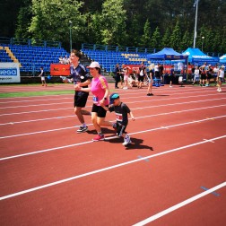 Panowie również włączyli się w bieg charytatywny. Na bieżni stadionu lekkoatletycznego nie zabrakło dzieci, dorosłych, ale i postaci z bajek, jak na przykład SuperWoman Wiolettę Jończyk, trenerkę fitness i jej kompankę Katarzynę Adamczyk, żołnierza wojska polskiego.