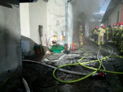 Pięć zastępów straży pożarnej zadysponowano do pożaru, który wybuchł przy ulicy Leonarda 14 w Kielcach. W kuchni jednego z budynków zapaliła się drewniana ściana.