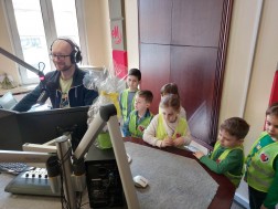 Przedszkolaki poznały naszą redakcję i dziennikarzy. Mogły nie tylko zobaczyć jak wygląda siedziba Radia eM i praca prezentera, ale też wziąć udział w rozmowie „na żywo”. Dla wszystkich był to radiowy debiut.