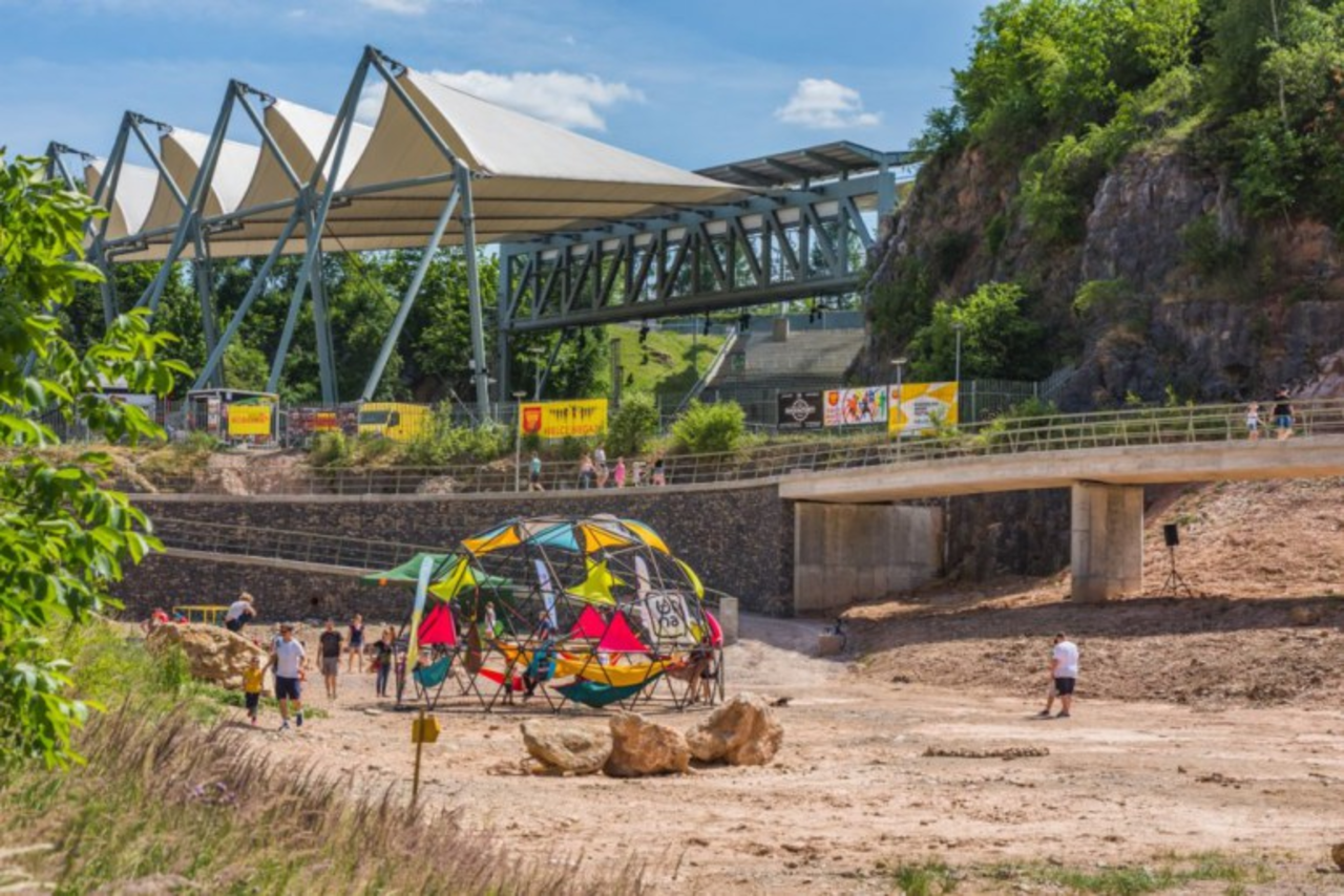 Mimo żaru lejącego się z nieba kielczanie wybrali się na drugi dzień Kadzielnia Sport Festiwal. Największym powodzeniem cieszy sie strefa rekreacji i... kurtyna wodna.