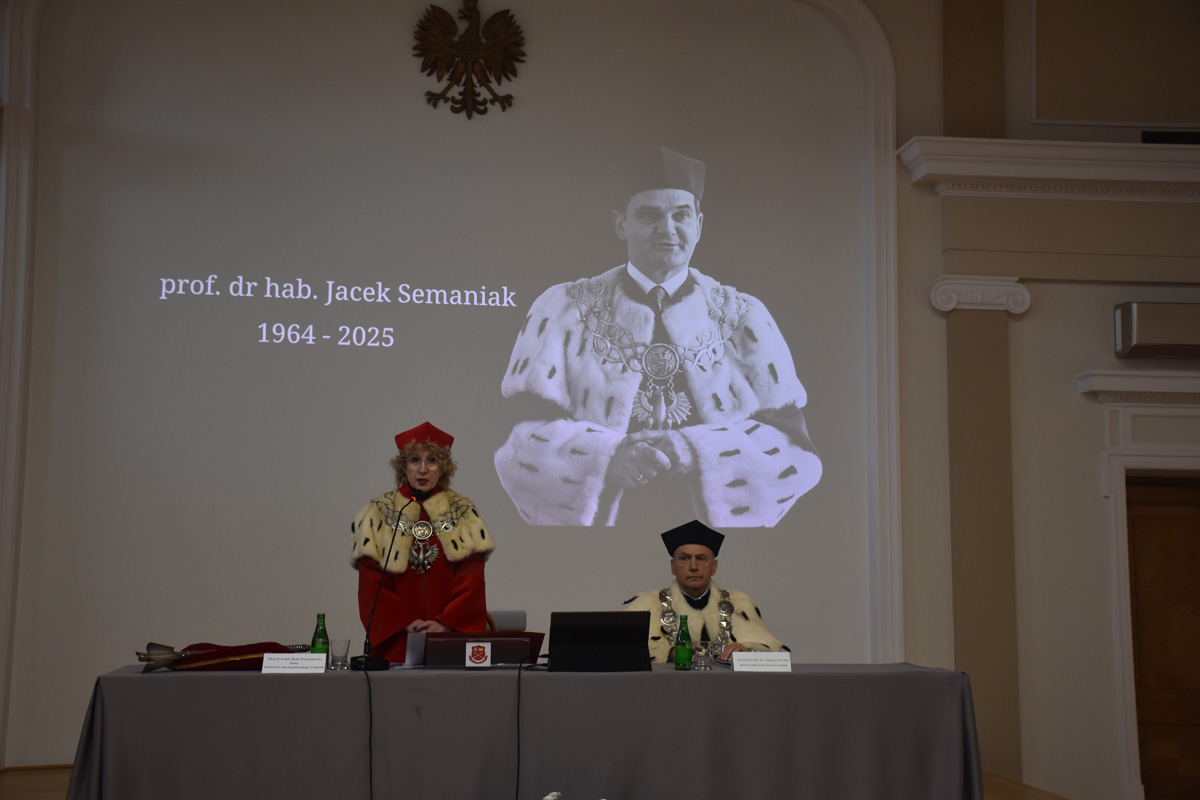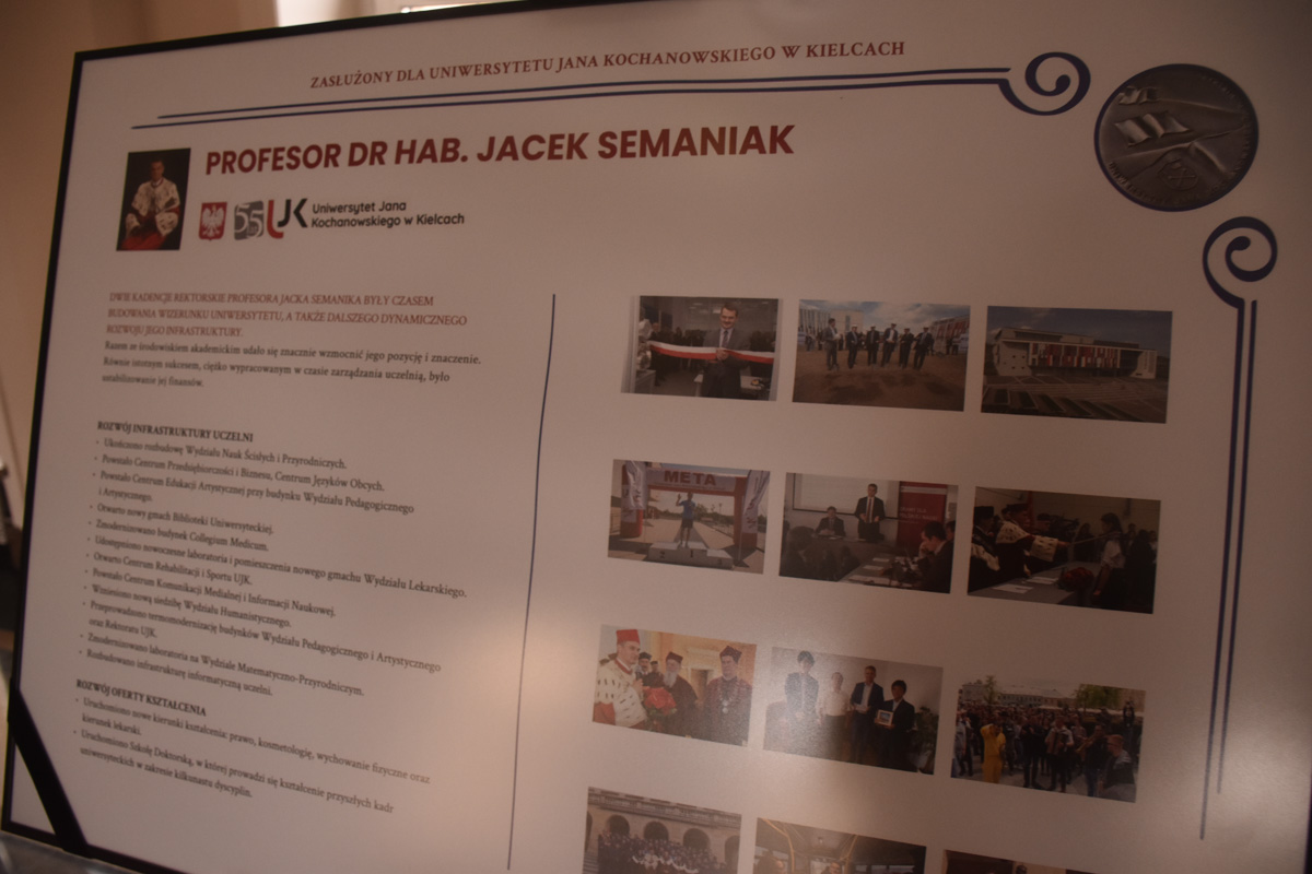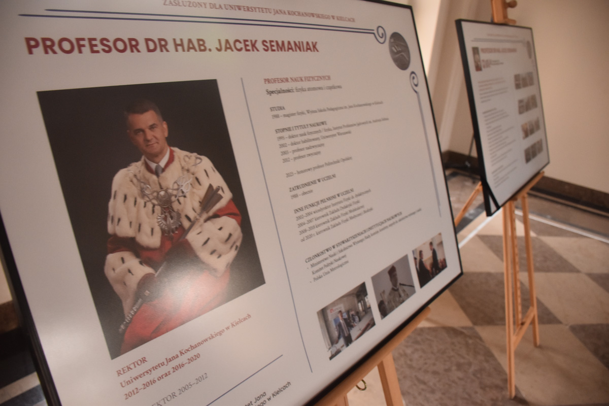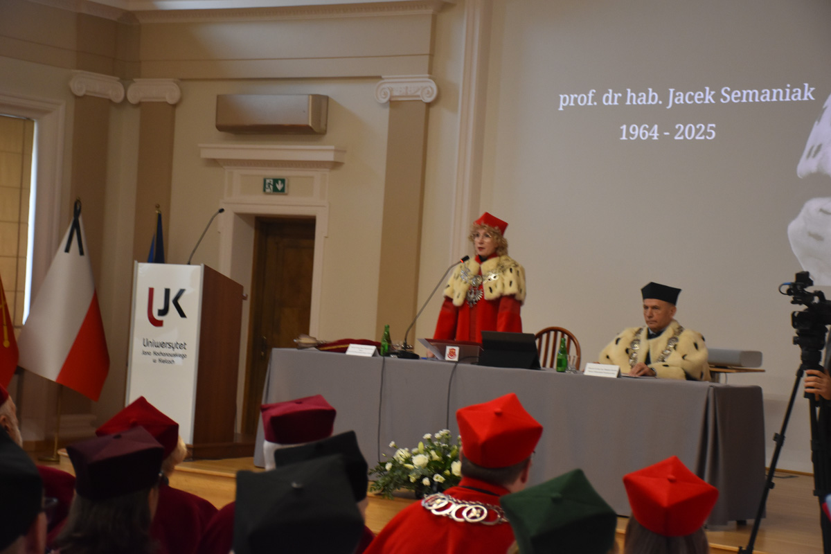 Środowisko akademickie oddało w ten sposób hołd zmarłemu w ubiegłym tygodniu profesorowi Jackowi Semaniakowi – prezesowi Głównego Urzędu Miar, a także wieloletniemu rektorowi Uniwersytetu Jana Kochanowskiego.