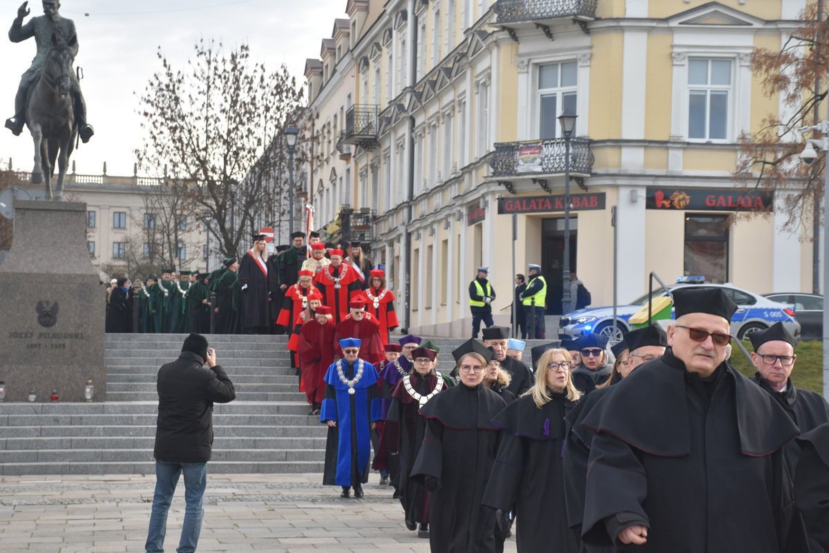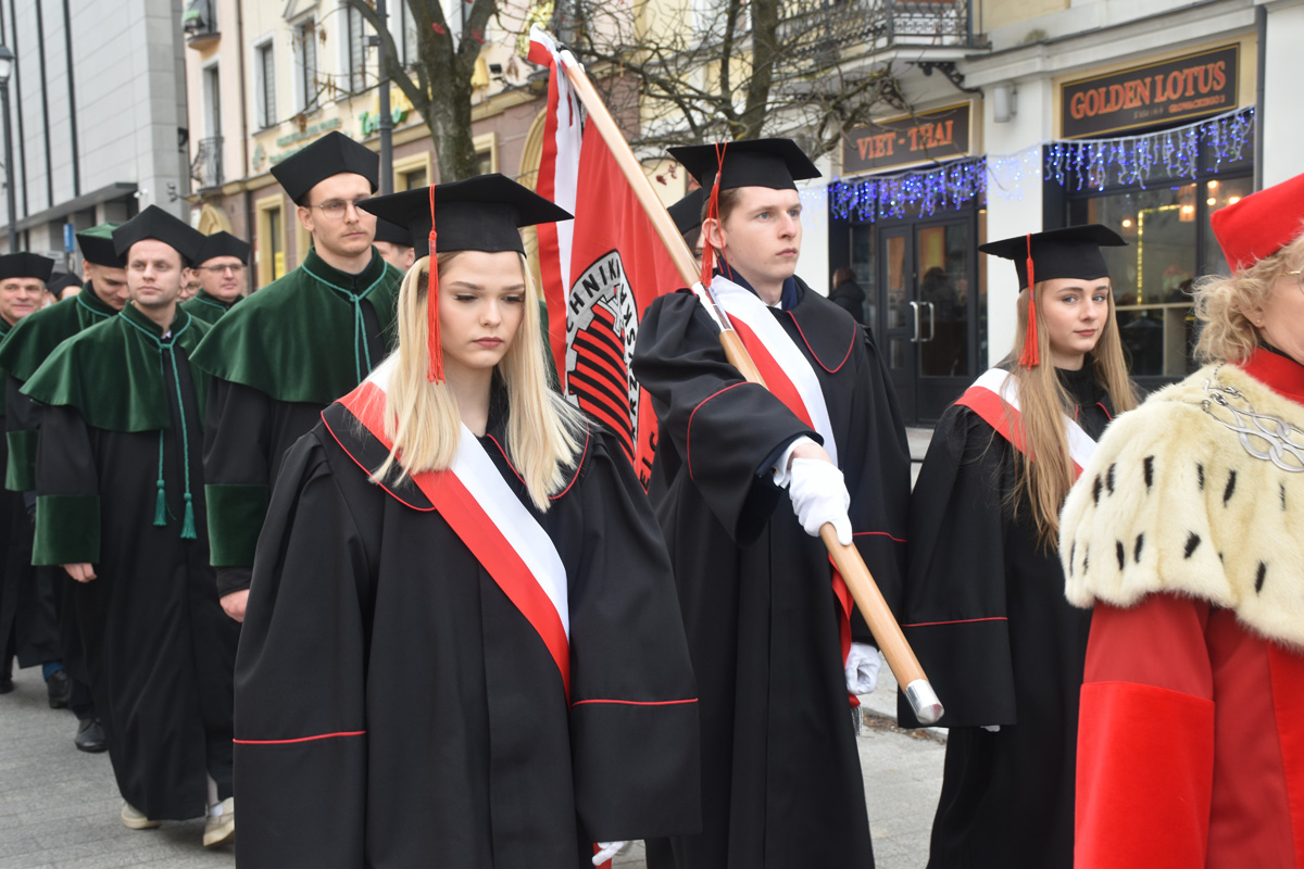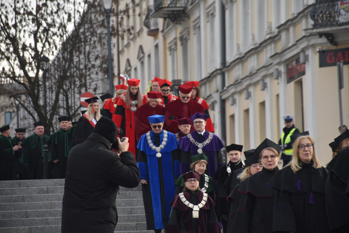 W uroczystym posiedzeniu senatów obydwu uczelni, które odbyło się w Auli Magna Uniwersytetu Jana Kochanowskiego w Kielcach, poza środowiskiem akademickim wzięli udział przedstawiciele Głównego Urzędu Miar, a także m.in. prezydent Kielc Agata Wojda oraz wojewoda Józef Bryk.