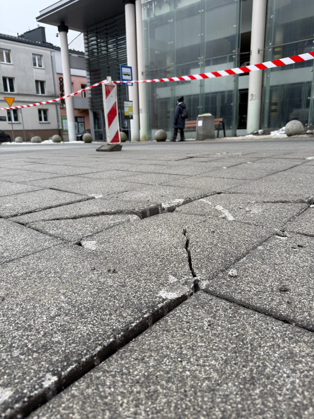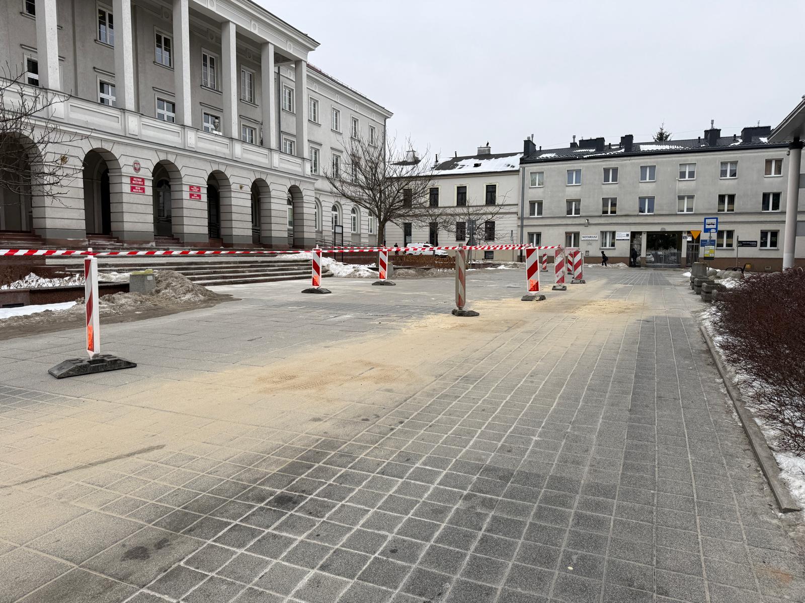 Naprawa uszkodzonej nawierzchni placu będzie możliwa dopiero przy sprzyjających warunkach atmosferycznych.