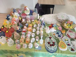 – Palmy tradycyjne wykonałyśmy pracą własnych rąk. Są kolorowe, ale jest też dużo zieleni, no i oczywiście bazie, a także len. Mamy też wykonane na szydełku jajeczka oraz stroiki – opowiadają panie Teresa i Ania, przedstawicielki Stowarzyszenia.