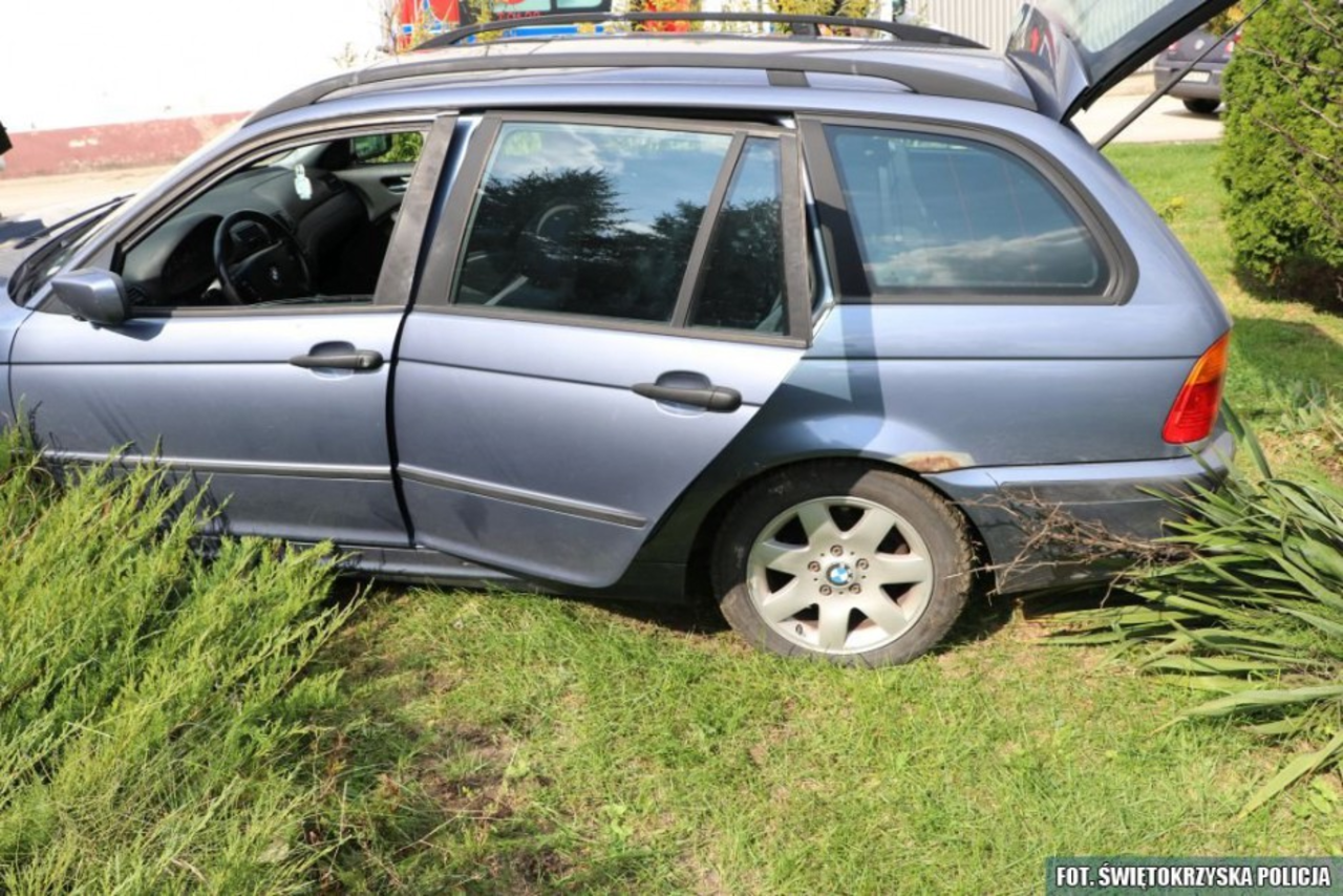 - Kiedy policjanci potwierdzili swoje informacje i wykonywali czynności, na posesję przyjechał 21-latek. Do kierowcy bmw podszedł funkcjonariusz, ale młody mężczyzna ani myślał wykonać polecenia i gwałtownie ruszył, potrącając interweniującego policjanta – relacjonuje Karol Macek z Komendy Miejskiej Policji w Kielcach.