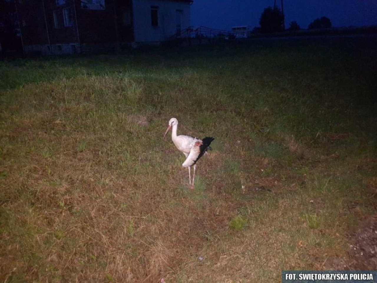 Policjanci z Jędrzejowa dostali wczoraj zgłoszenie o rannym bocianie w miejscowości Imielno. Na szczęście zwierzę szybko zostało odnalezione przez mundurowych i otrzymało niezbędną pomoc.
