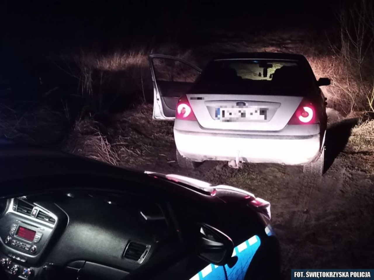 Funkcjonariusze otrzymali zgłoszenie od świadka, że na terenie gminy Masłów zauważył forda, którego sposób jazdy wydał mu się podejrzany. Kierowca miał jeździć brawurowo i mieć trudności z zapanowaniem nad pojazdem.