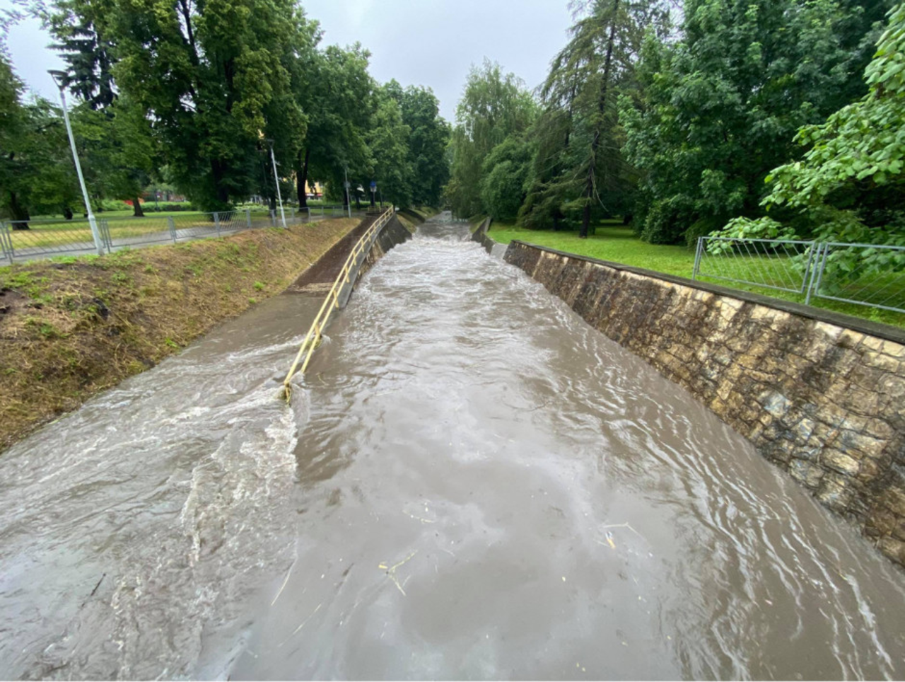 Znaczący wzrost poziomu wody w Silnicy jest efektem intensywnych opadów, jakie przechodzą dziś nad Kielcami i regionem świętokrzyskim. Strażacy wyjeżdżali również do podtopionych domów i zablokowanych przez konary ulic.