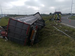 - 45-letni mieszkaniec Ostrowca Świętokrzyskiego z nieustalonych dotąd przyczyn zjechał z drogi i uderzył w bariery energochłonne. Ciężarówka przewróciła się na bok i znalazła się poza jezdnią. Na szczęście kierowca nie odniósł poważnych obrażeń – powiedziała policjantka.